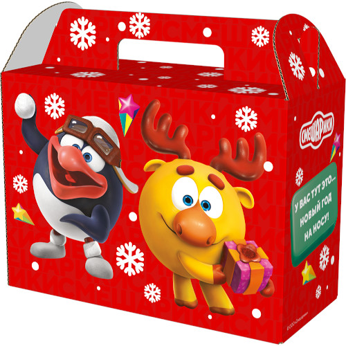 Подарите себе и своим близким кусочек радости с нашим сладким новогодним подарком в ярко-красной коробке «Смешарики»! На упаковке изображены всеми любимые персонажи мультфильма, праздничные краски, снежинки, елки, подарки, приятные пожелания. Самое главное внутри - любимые лакомства от известных производителей. Порадуйте себя и своих близких этим чудесным подарком, который станет отличным началом Нового года! Сюрприз внутри каждого подарка - игрушка тянучка гусь антистресс - компактная, приятная и гладкая на ощупь, до 9 см в длину, выполнена из технологичного и безопасного материала.