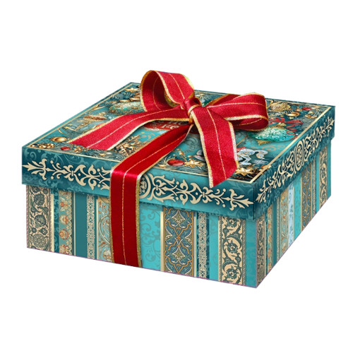 Материал: футлярный картон с многоцветным тиснением, атласная лента